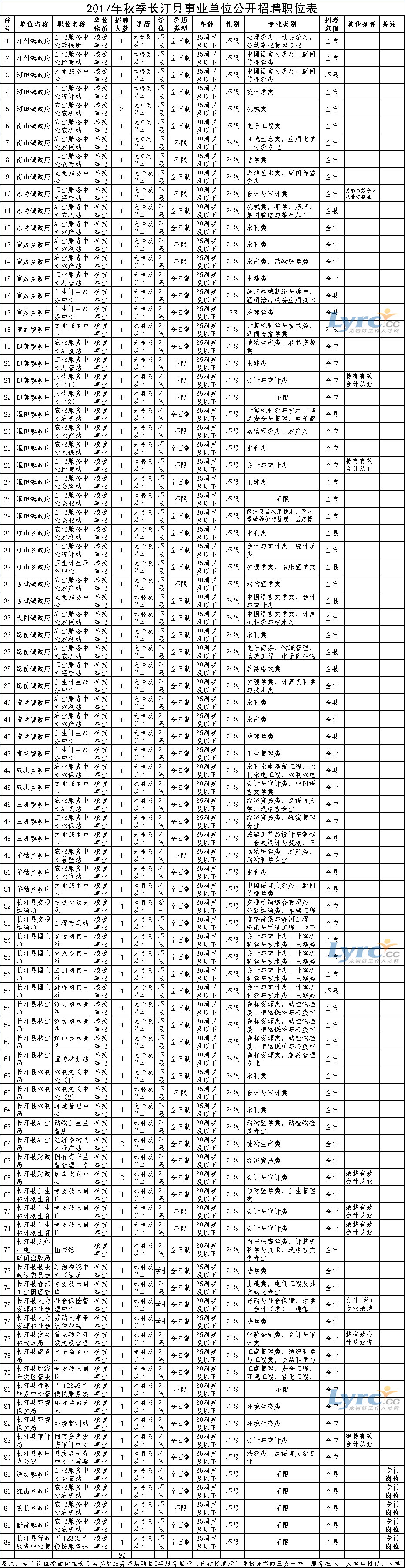 2017年秋季我縣面向社會(huì)公開招聘92人,具體招聘人數(shù)、崗位、資格條件等詳見《2017年秋季長(zhǎng)汀縣事業(yè)單位公開招聘工作人員職位表》(見附件)。