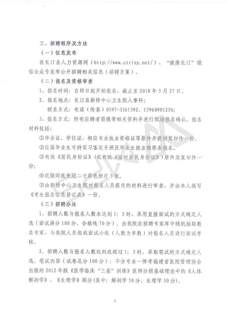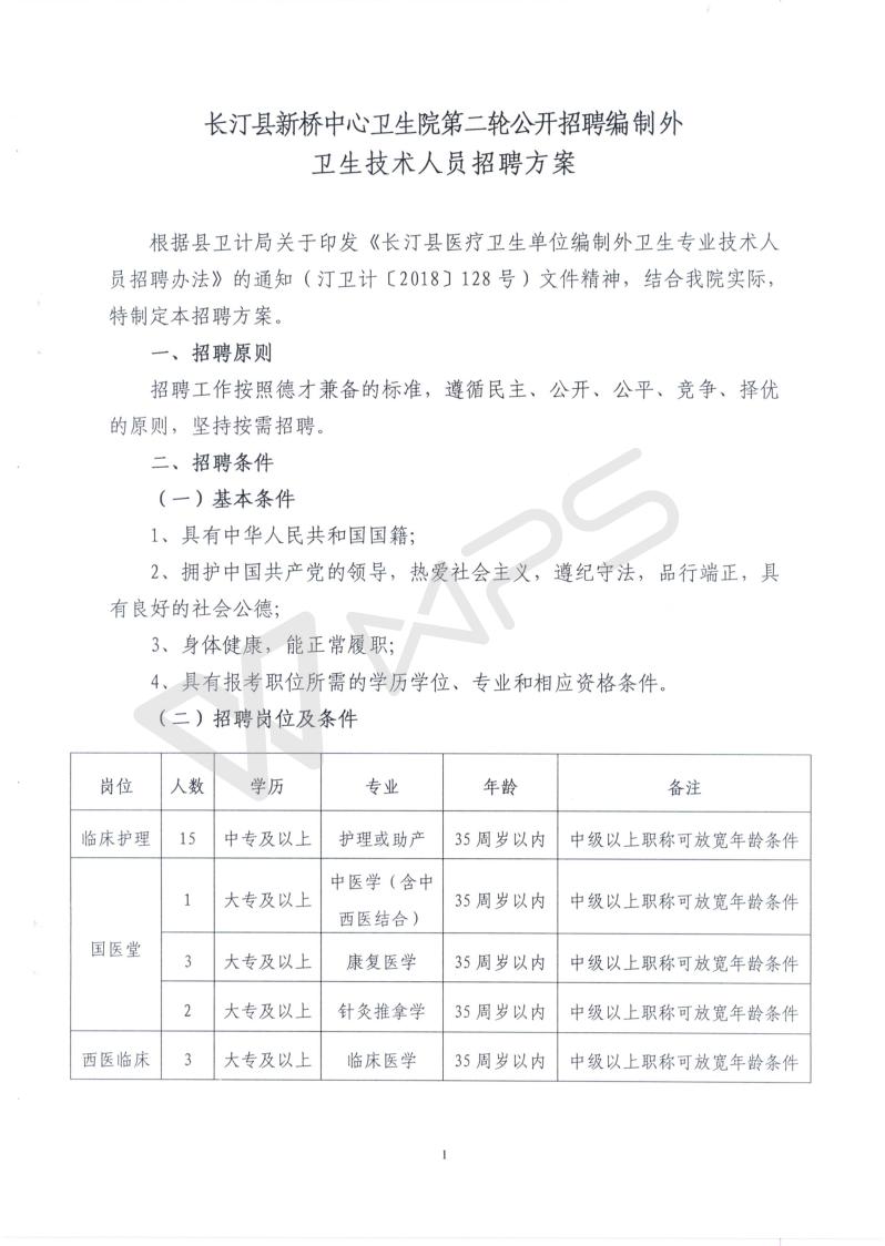 您當(dāng)前的位置:首頁 > 長汀國有企事業(yè) > 長汀縣新橋中心衛(wèi)生院第二輪公開招聘編制外衛(wèi)生技術(shù)人員招聘方案