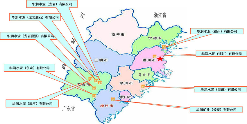 華潤水泥控股有限公司福建大區(qū)總投資50億元人民幣。擁有在營水泥熟料基地5家(龍巖、永定、雁石、曹溪、漳平公司),水泥粉磨站2家(泉州、連江公司),礦業(yè)公司1家(長泰礦業(yè)),碼頭1家(福州碼頭),產(chǎn)能規(guī)模約為水泥1080萬噸/年。截止至2018年1月1日,福建大區(qū)共有在職人員2350人。