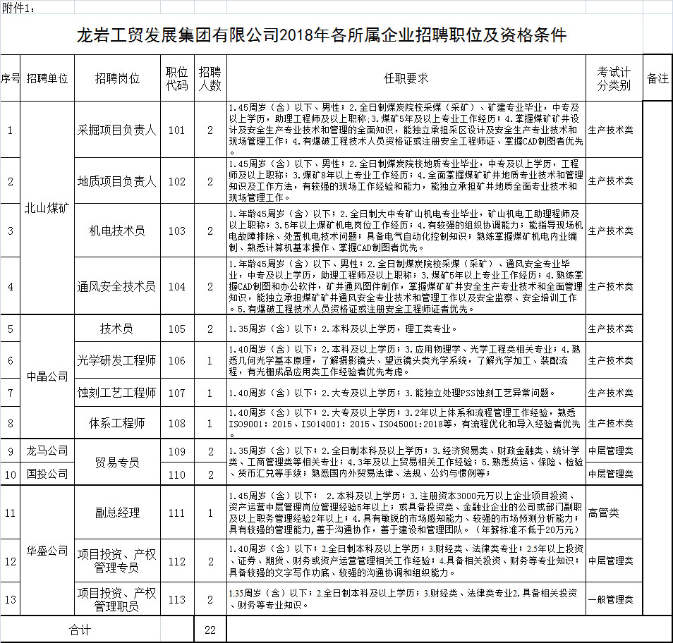 附件1.龍巖工貿(mào)發(fā)展集團(tuán)有限公司2018年各所屬企業(yè)招聘職位及資格條件