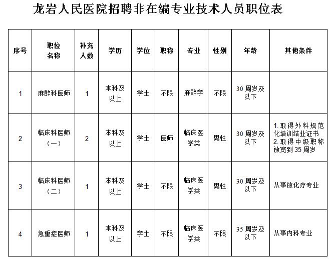 • 龍巖人民醫(yī)院公開招聘非在編專業(yè)技術(shù)人員公告