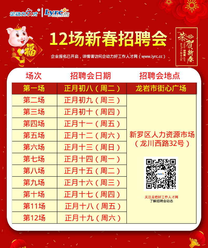 您當前的位置:首頁 > 新聞動態(tài) > 歡迎參加龍巖好工作人才網(wǎng)12場新春招聘會