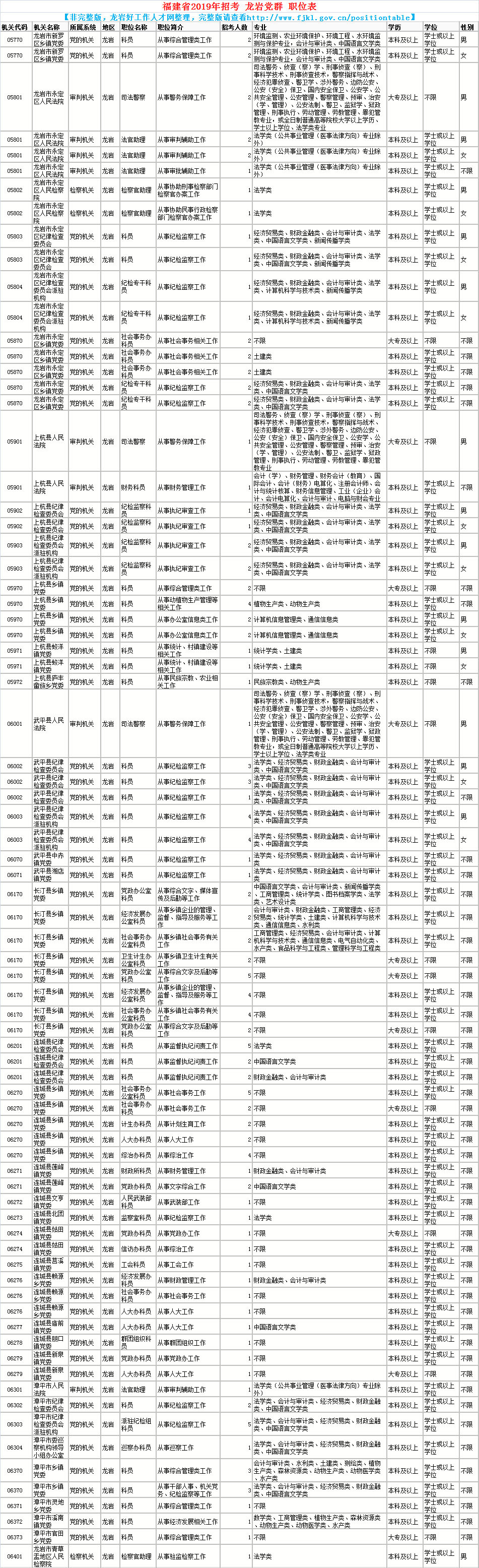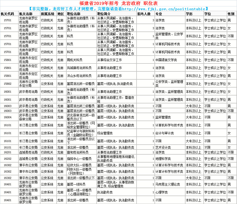 您當(dāng)前的位置:首頁(yè) > 新聞動(dòng)態(tài) > 2019年度龍巖市公務(wù)員招考職位表