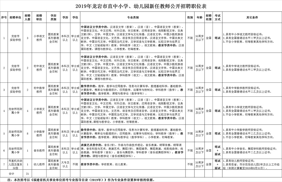 各職位的具體要求,詳見附件《2019年龍巖市直中小學(xué)幼兒園新任教師公開招聘職位表》(以下簡稱《職位表》)。