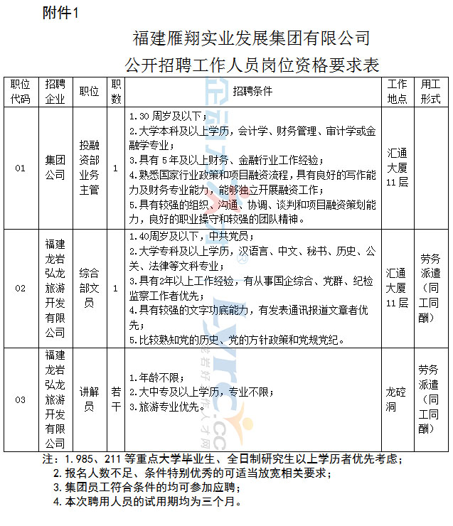 1.雁翔集團公開招聘工作人員崗位資格要求表(點擊下載)