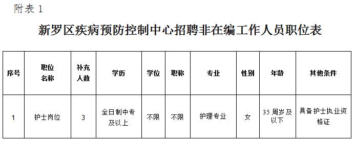 附件:1.新羅區(qū)疾病預(yù)防控制中心招聘非在編工作人員職位表 (點(diǎn)擊下載)