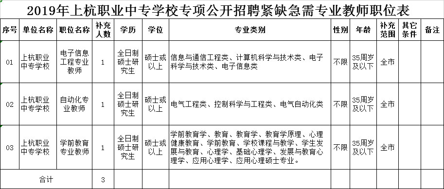 附件:2019年上杭職業(yè)中專(zhuān)學(xué)校專(zhuān)項(xiàng)公開(kāi)招聘緊缺急需專(zhuān)業(yè)教師職位表