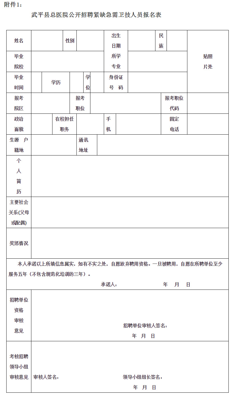 1.武平縣總醫(yī)院公開招聘緊缺急需衛(wèi)技人員報名表