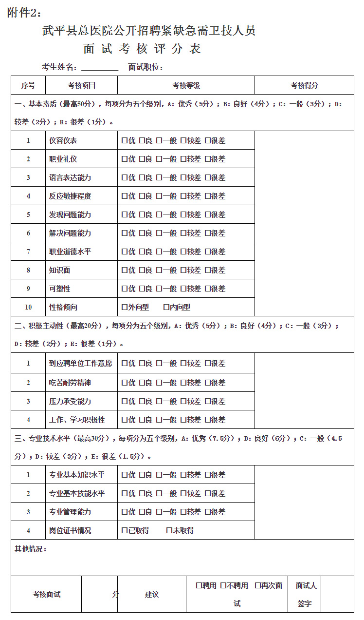 2.武平縣總醫(yī)院公開招聘緊缺急需衛(wèi)技人員面試考核評分表