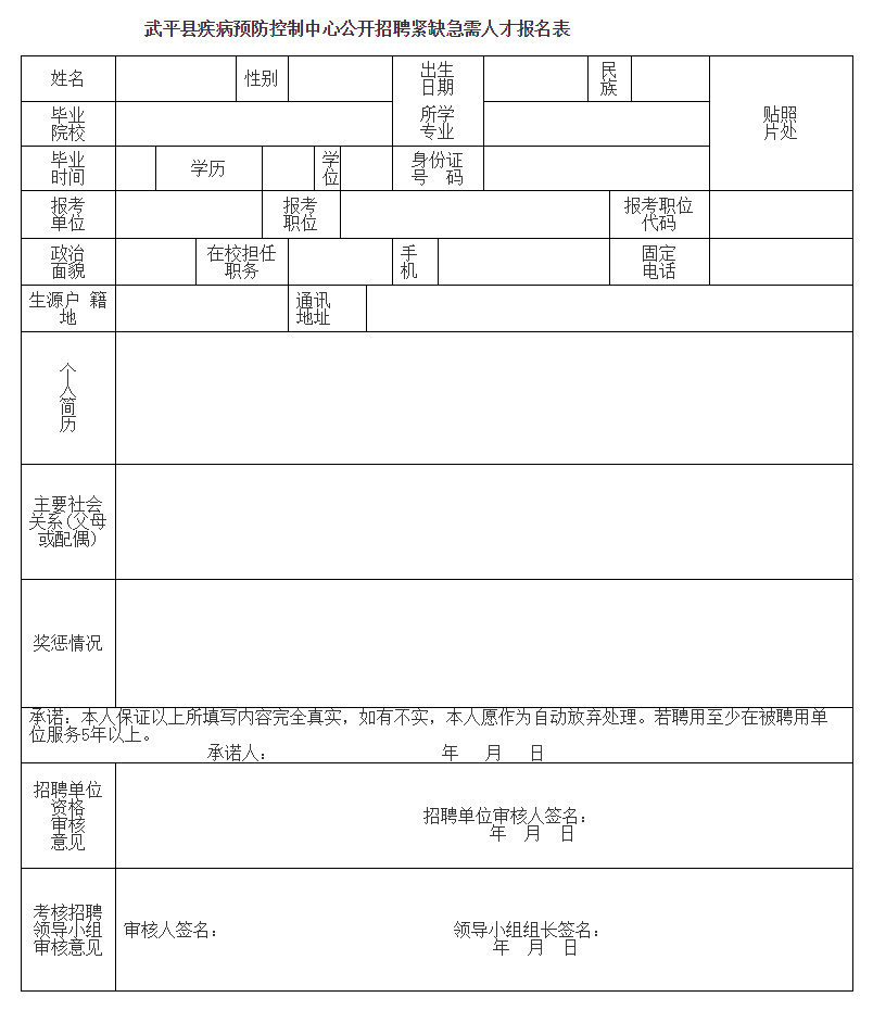附件:1.武平縣疾病預防控制中心公開招聘緊缺急需人才報名表