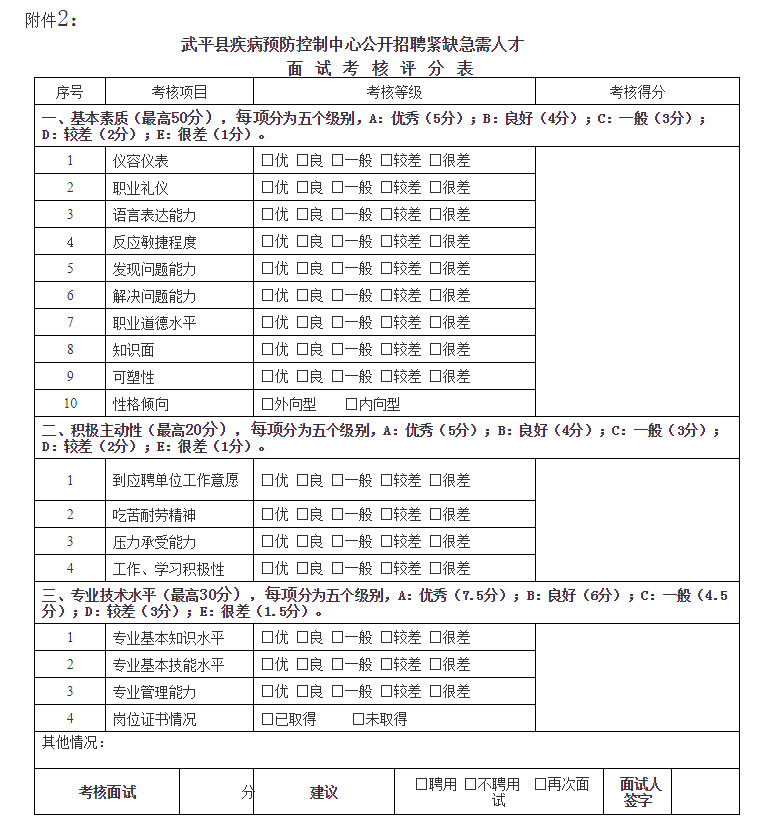 2.武平縣疾病預防控制中心公開招聘緊缺急需人才面試考核評分表