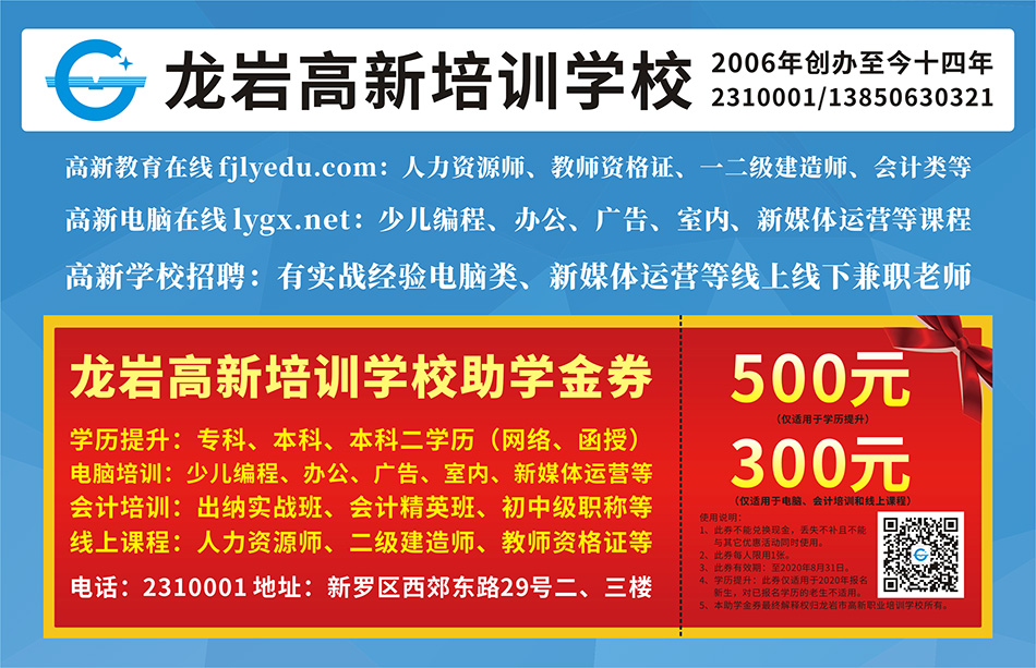 • 發(fā)布時(shí)間:2020/2/19 11:50:29  |  來(lái)源:龍巖培訓(xùn)網(wǎng)  |  已瀏覽 人次