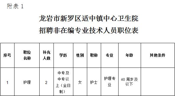 《龍巖市新羅區(qū)適中鎮(zhèn)中心衛(wèi)生院公開招聘非在編護(hù)士人員職位表》(點(diǎn)擊下載)