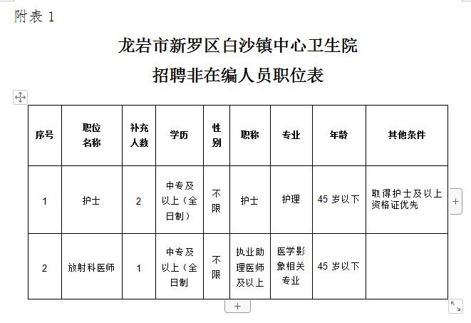 附件1:龍巖市新羅區(qū)白沙鎮(zhèn)中心衛(wèi)生院招聘非在編人員職位表(點擊下載)