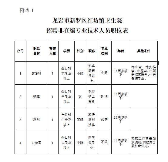 附件1:《龍巖市新羅區(qū)紅坊鎮(zhèn)衛(wèi)生院公開招聘非在編工作人員職位表》