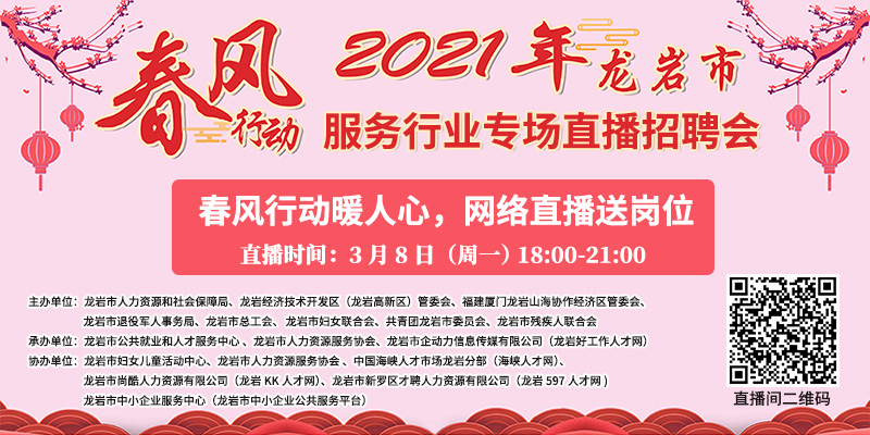 • 【直播回放】2021年龍巖市“春風行動—海西招聘”服務行業(yè)專場直播招聘會公告