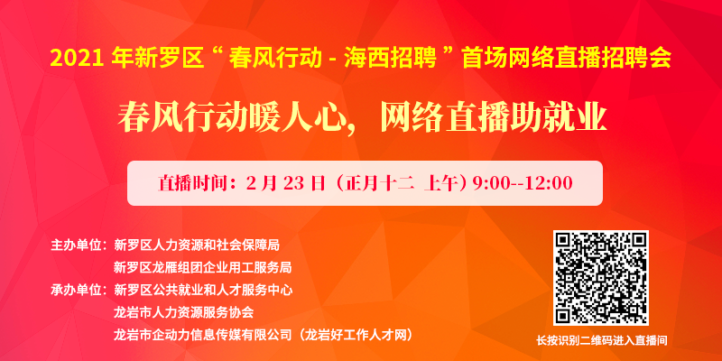 龍巖好工作人才網(wǎng)是提供龍巖人才、龍巖招聘服務(wù)的龍巖人才招聘網(wǎng)站 全力打造龍巖人才網(wǎng)絡(luò)領(lǐng)域強勢平臺 為廣大企業(yè)人才服務(wù)