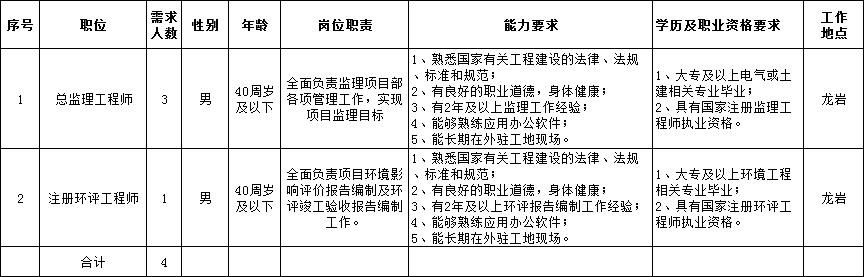 • 龍巖電力勘察設(shè)計院有限公司公開招聘工作人員公告