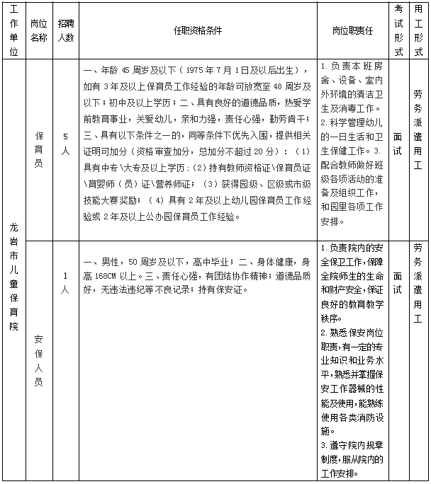(一)聘用:體檢合格的應(yīng)聘人員,與龍巖市人力資源服務(wù)有限公司簽訂勞動合同,再派遣至龍巖市兒童保育院工作。