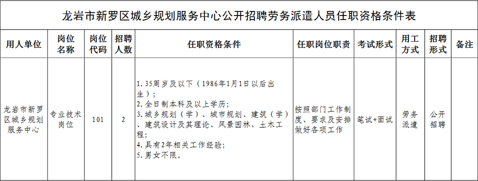 • 龍巖市新羅區(qū)城鄉(xiāng)規(guī)劃服務(wù)中心關(guān)于公開招聘勞務(wù)派遣人員的公告