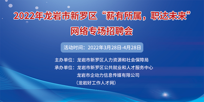 • 歡迎參加2022年龍巖市新羅區(qū)“薪有所屬,職達(dá)未來”網(wǎng)絡(luò)專場(chǎng)招聘會(huì)