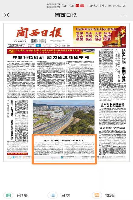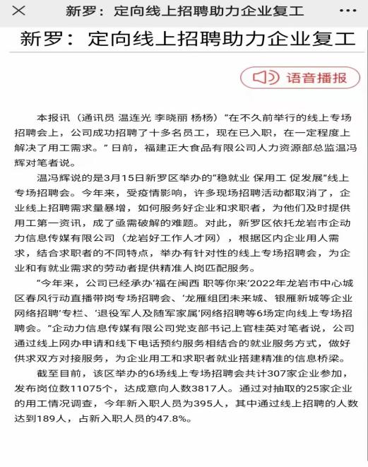• 閩西日報:企動力定向線上招聘助力企業(yè)復(fù)工