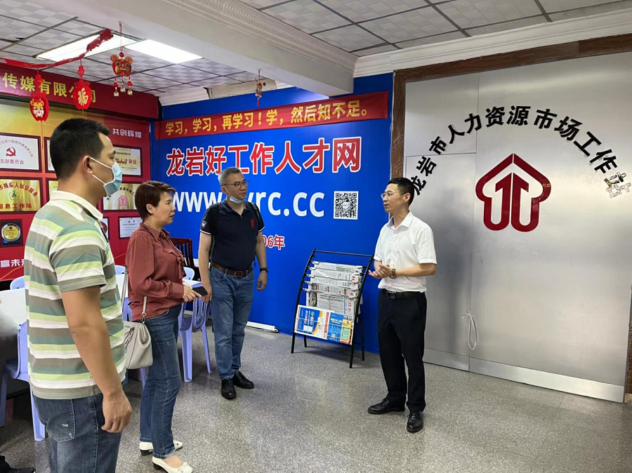 •   5月26日下午,廈門(mén)市勞動(dòng)就業(yè)中心三級(jí)調(diào)研員黃慧敏帶領(lǐng)廈門(mén)市、區(qū)就業(yè)中心調(diào)研組一行9人蒞臨龍巖市人力資源協(xié)會(huì)會(huì)長(zhǎng)單位(企動(dòng)力好工作人才網(wǎng))參觀、學(xué)習(xí)、交流,并就“目前疫情形勢(shì)下有關(guān)穩(wěn)就業(yè)服務(wù)”的課題進(jìn)行座談,龍巖市公共就業(yè)和人才服務(wù)中心副主任湯德旺陪同調(diào)研。