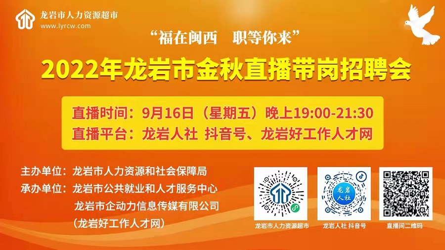 “福在閩西 職等你來”2022年龍巖市金秋直播帶崗招聘會