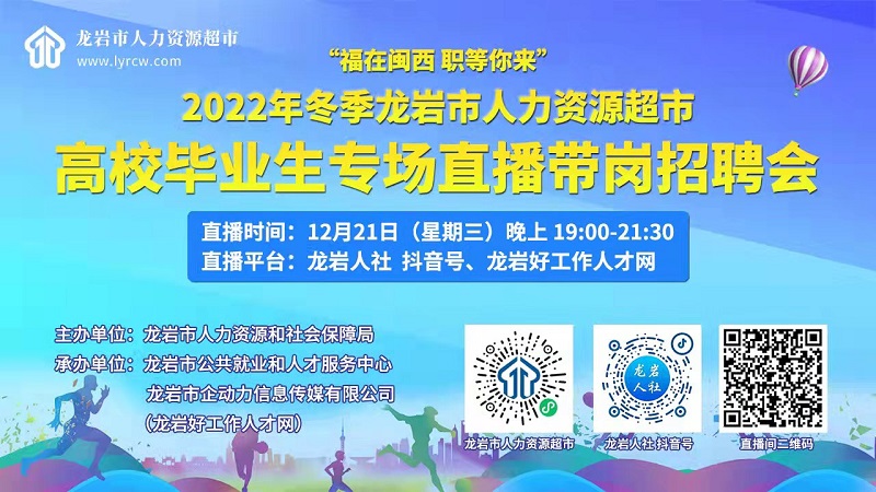“福在閩西 職等你來(lái)”2022年冬季龍巖市人力資源超市高校畢業(yè)生專(zhuān)場(chǎng)直播帶崗招聘會(huì)