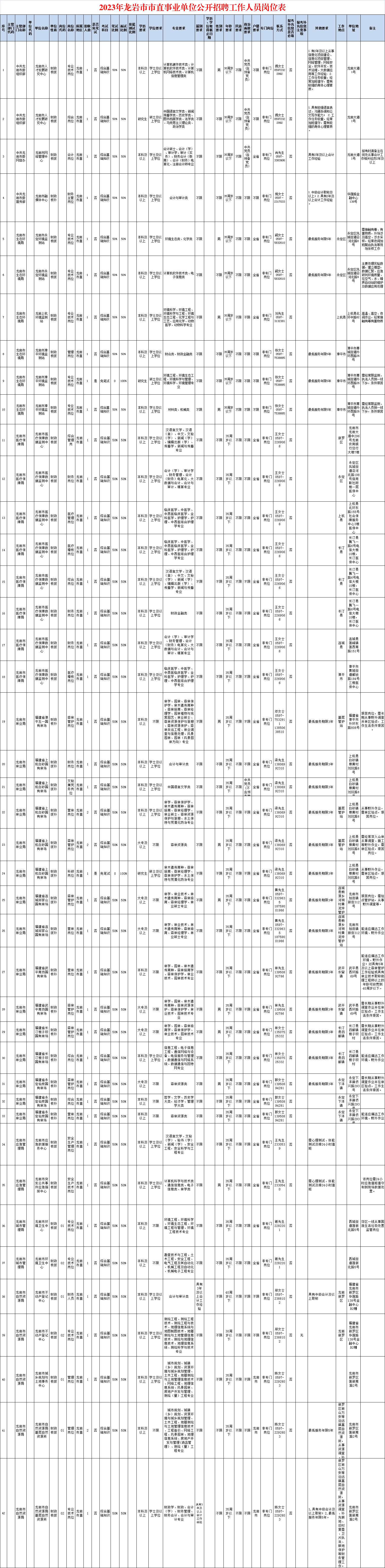 附件1 2023年龍巖市市直事業(yè)單位公開招聘工作人員崗位表.xlsx