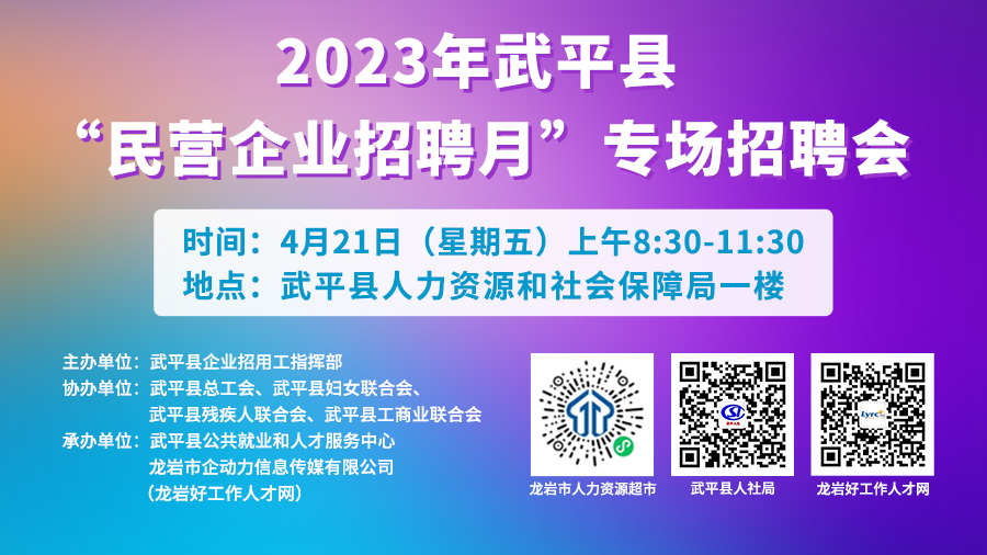 • 【4月21日】2023年武平縣“民營企業(yè)招聘月”專場招聘會公告