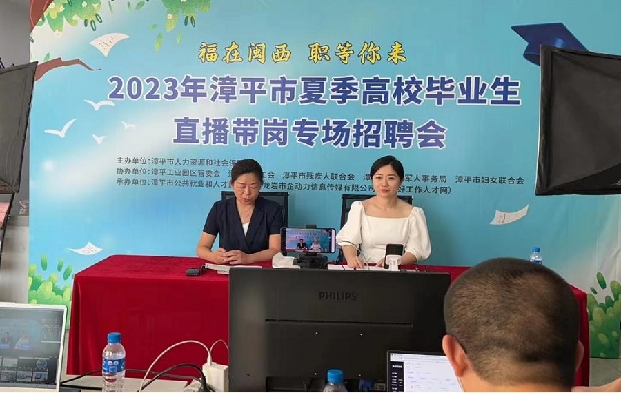 •   7月12日,由漳平市人力資源和社會保障局主辦,漳平工業(yè)園區(qū)管委會、漳平市總工會、漳平市殘疾人聯(lián)合會、漳平市退役軍人事務(wù)局、漳平市婦女聯(lián)合會協(xié)辦,漳平市公共就業(yè)和人才服務(wù)中心、龍巖市企動力信息傳媒有限公司(龍巖好工作人才網(wǎng))承辦的2023年漳平市夏季高校畢業(yè)生直播帶崗專場招聘會成功舉辦。
