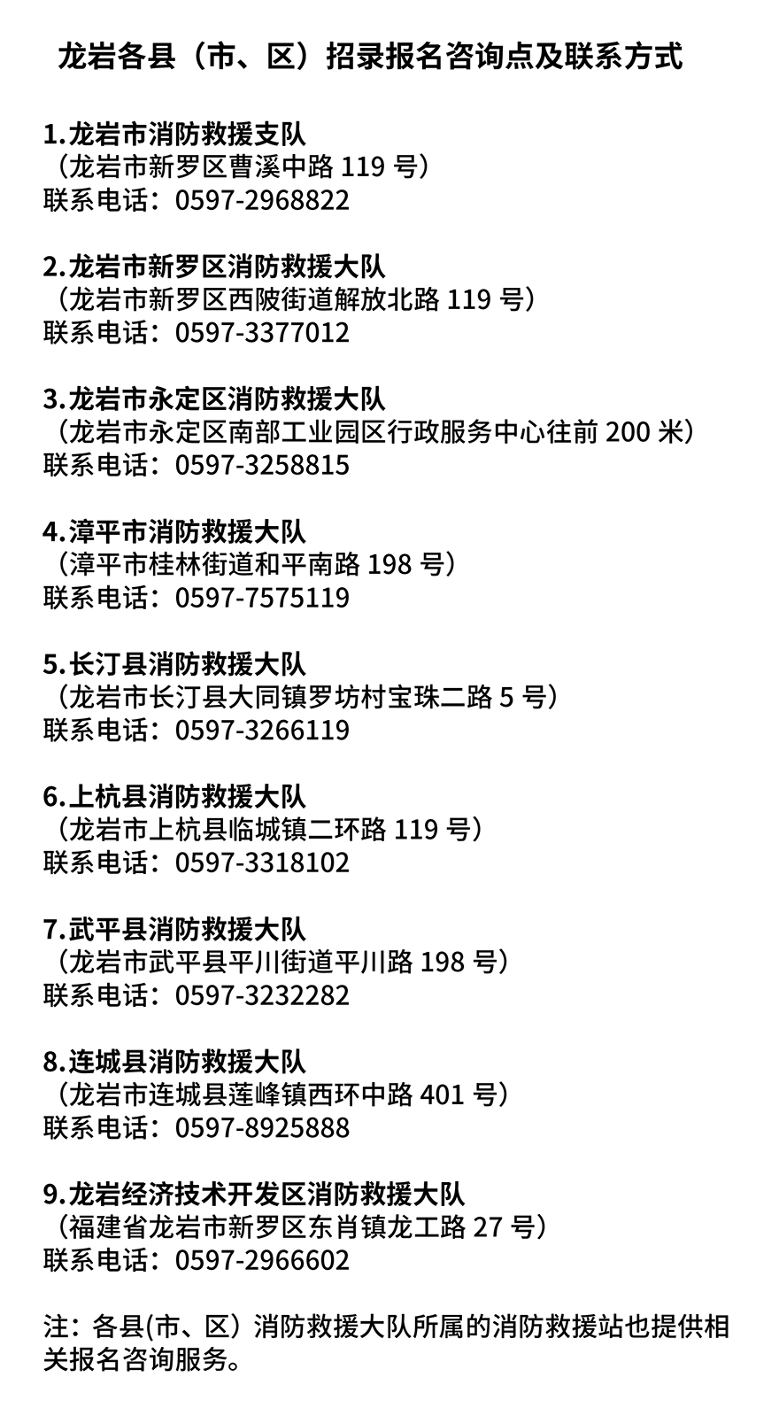 招錄對象也可到福建省國家綜合性消防救援隊伍各支隊、大隊、站(中隊),領(lǐng)取宣傳資料,現(xiàn)場上網(wǎng)填寫報名信息。招錄對象須憑注冊賬號、密碼打印準(zhǔn)考證,查詢招錄進度,請務(wù)必牢記。