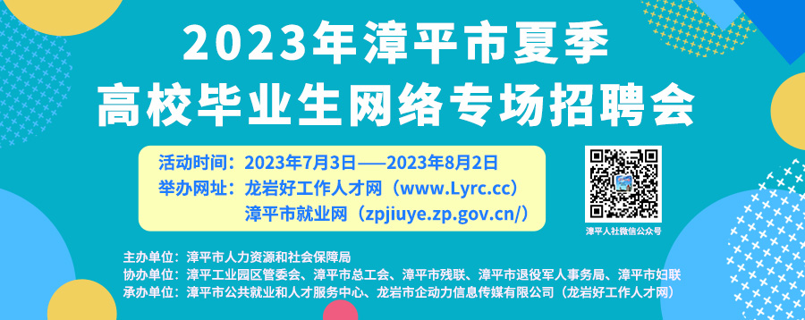 • 2023年漳平市夏季高校畢業(yè)生網(wǎng)絡(luò)專(zhuān)場(chǎng)招聘會(huì)