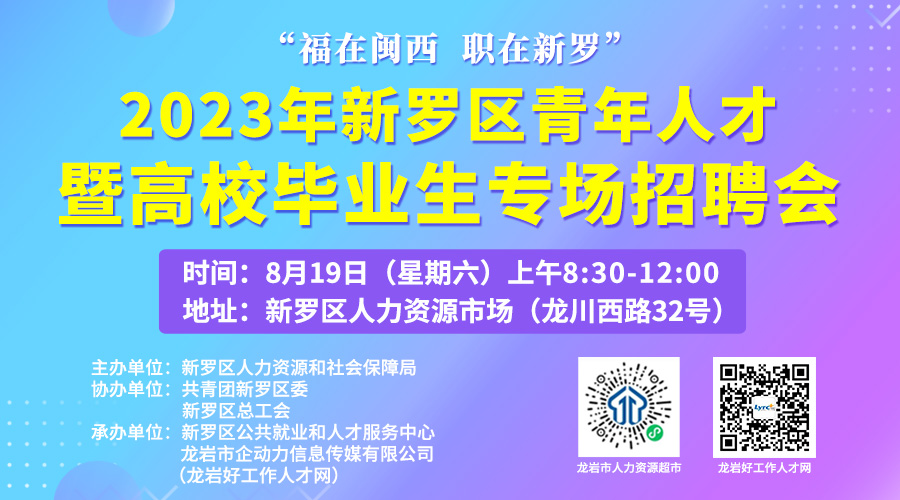 • 【8月19日】2023年新羅區(qū)青年人才暨高校畢業(yè)生專場(chǎng)招聘會(huì)