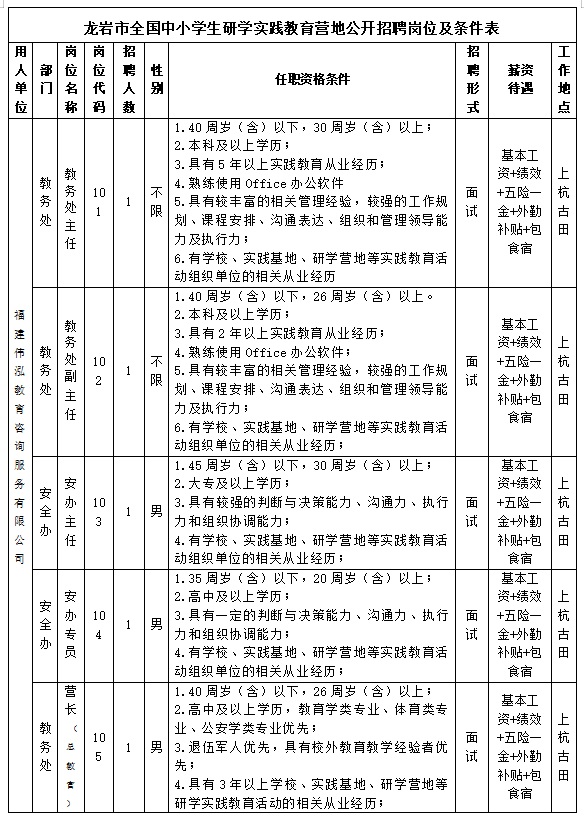 • 關(guān)于古田研學(xué)營地補(bǔ)充招聘部分空缺崗位工作人員的公告