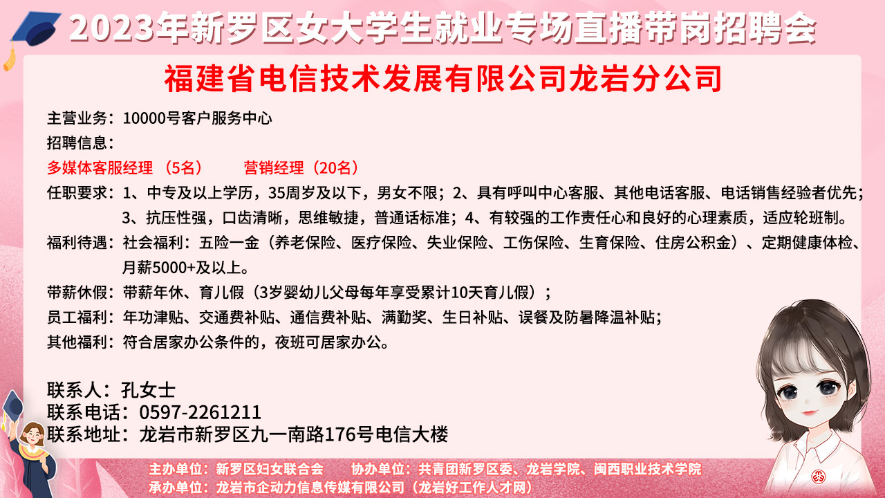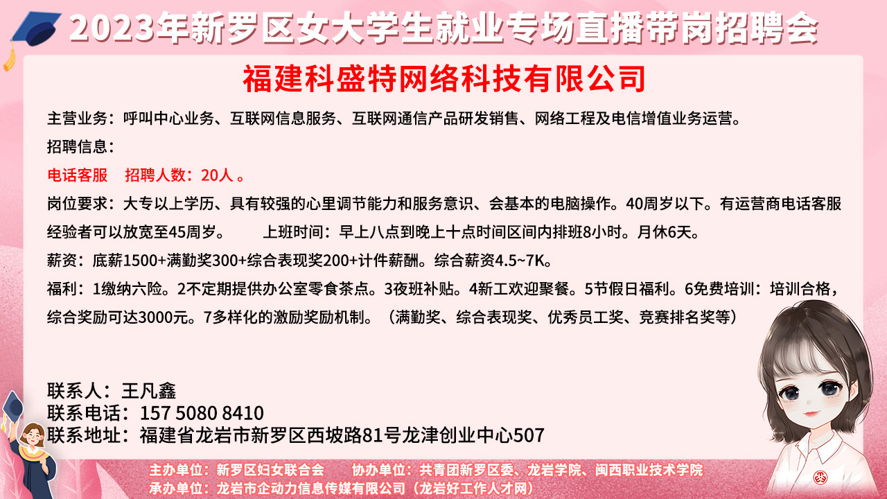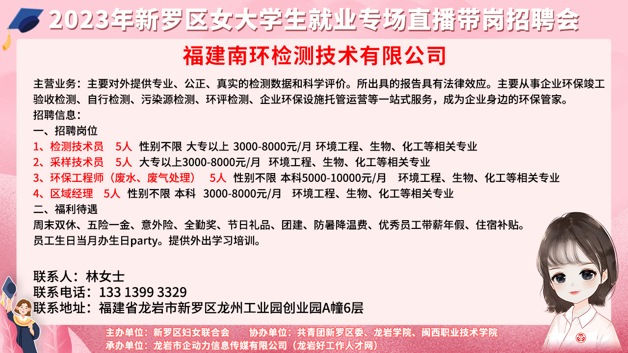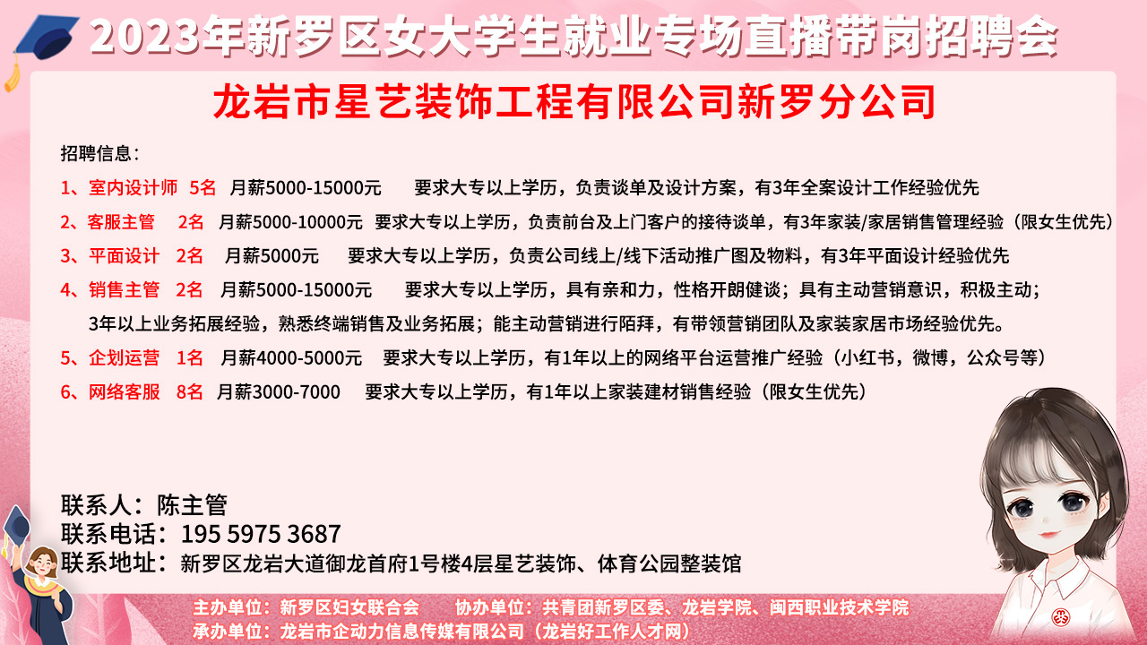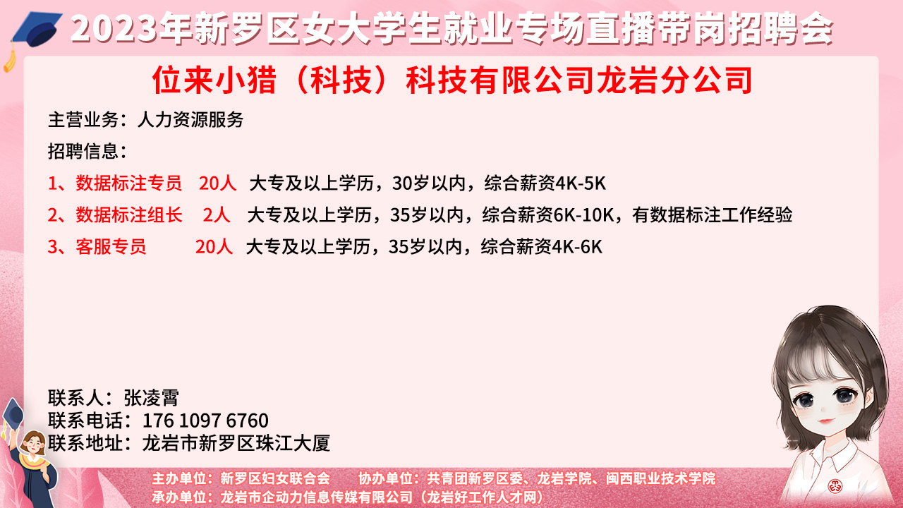 您當(dāng)前的位置:首頁(yè) > 新聞動(dòng)態(tài) > 2023年新羅區(qū)女大學(xué)生就業(yè)專(zhuān)場(chǎng)直播帶崗招聘會(huì)
