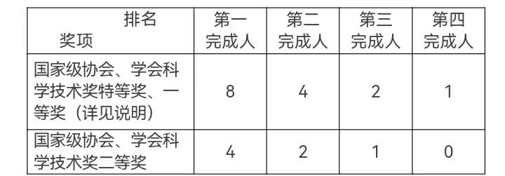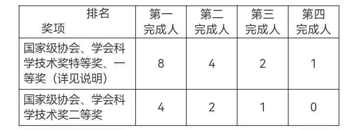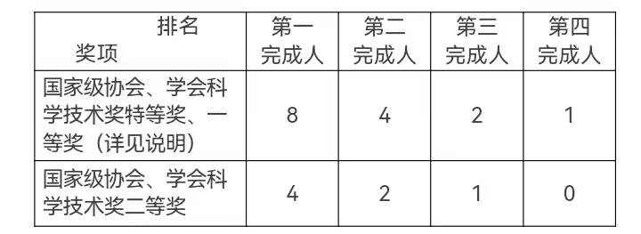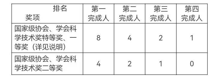 2.近10年內(nèi)所承擔科研項目曾獲得以下獎項,并按下列計算標準累計所得分值在10分以上的人才。如同一個項目獲多個獎項,只按其最高分值計分一次,不重復計分。