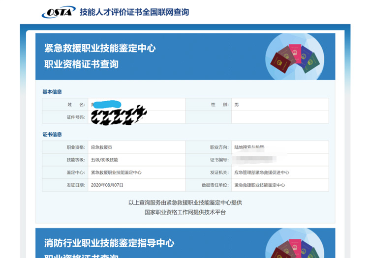 應急救援證書是由中華人民共和國人力資源和社會保障部批準,應急管理部緊急救援促進中心蓋章頒發(fā)資格證書,此證書全國通用,終身有效,含金量高。