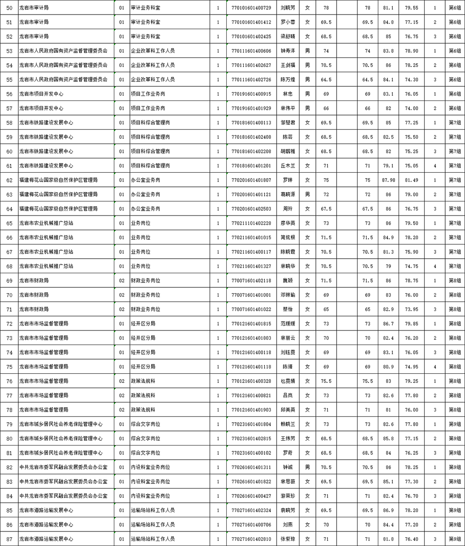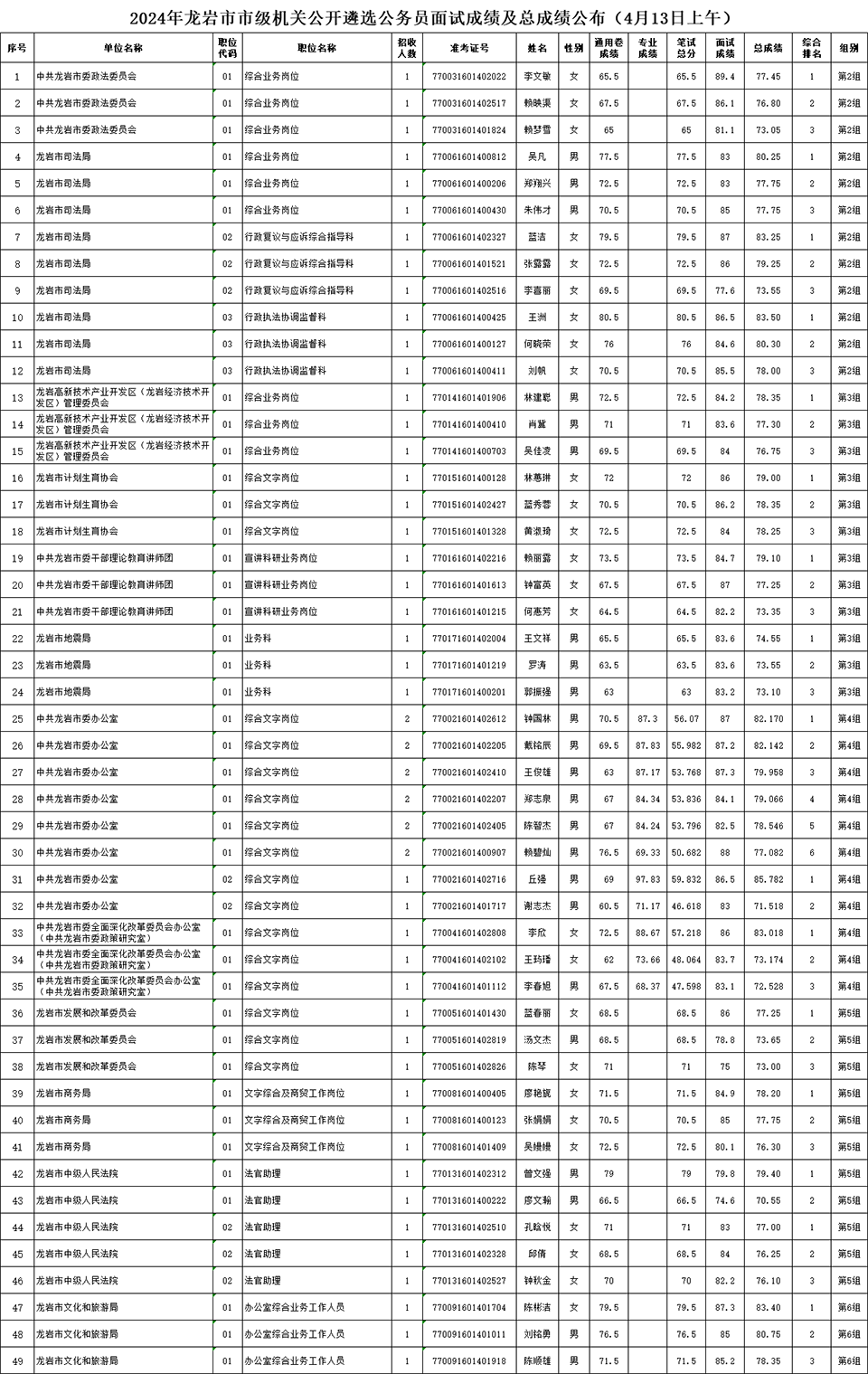 您當(dāng)前的位置:首頁 > 新羅區(qū)國有企事業(yè) > 2024年龍巖市市級機(jī)關(guān)公開遴選公務(wù)員面試成績及總成績公布(4月13日上午)