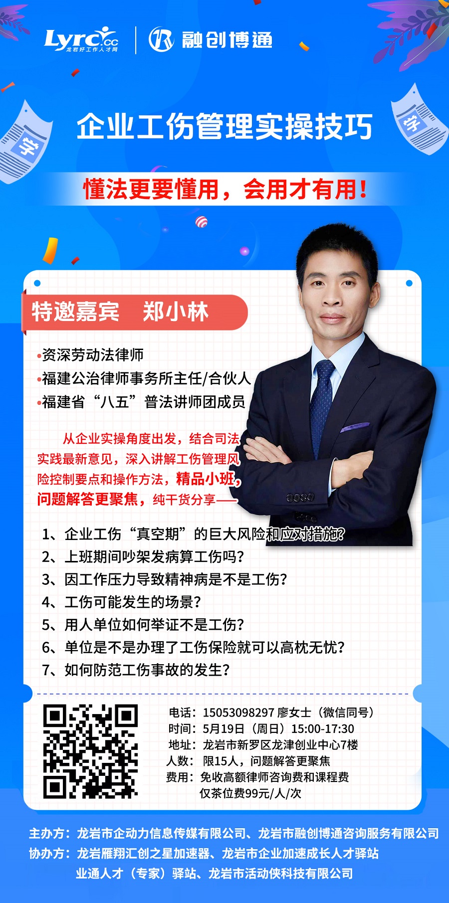免課程費和高額律師咨詢費,僅收場地費99元/人/次