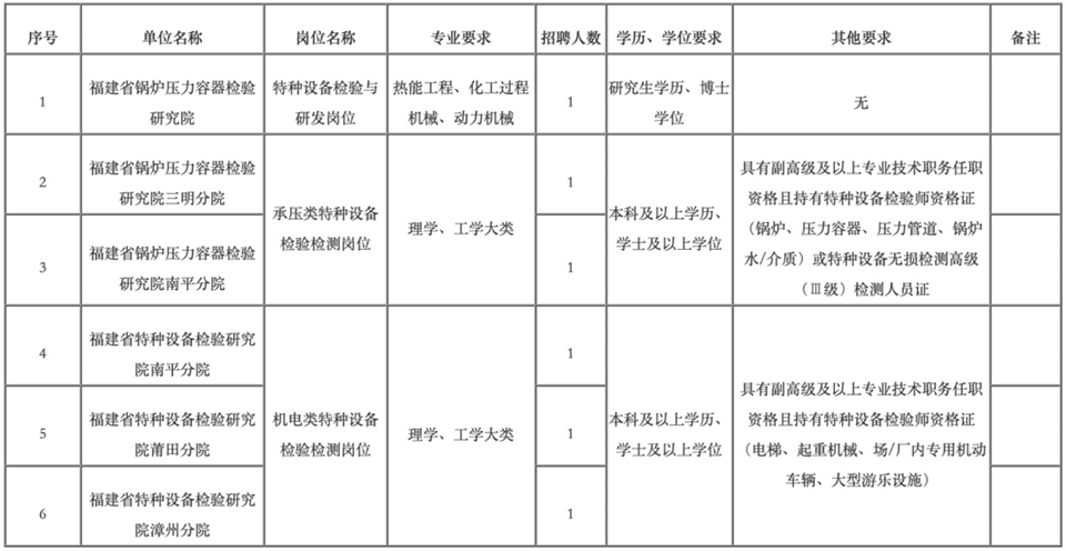 福建省特種設(shè)備檢驗(yàn)研究院公開招聘高層次人才6名