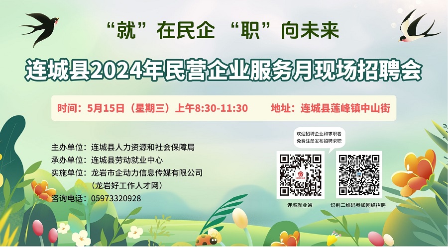 【5月29日直播】龍巖市2024年“千校萬(wàn)崗·筑夢(mèng)基層”行動(dòng)暨青年人才專(zhuān)場(chǎng)直播帶崗招聘會(huì)