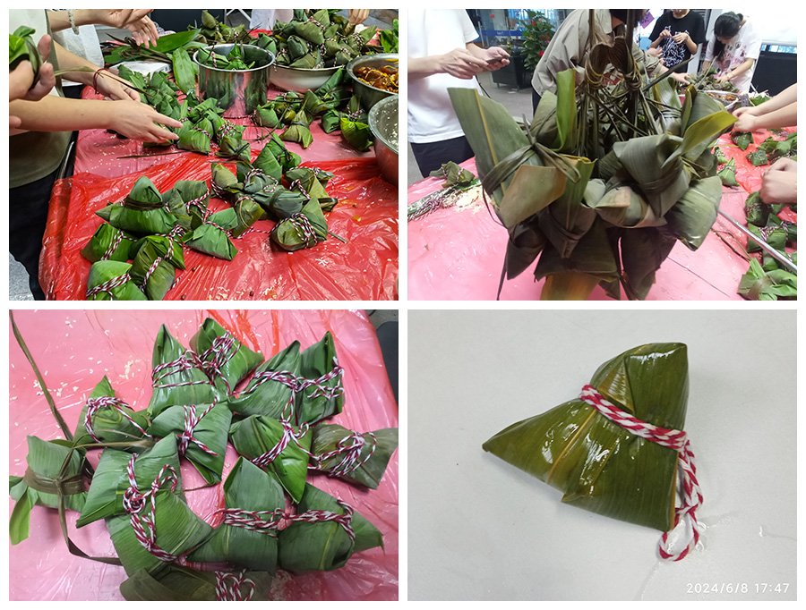 萬事具備后,直接進(jìn)入主題,伙伴們迫不及待地包起來。有的人動(dòng)作嫻熟,一眨眼功夫就包好了一個(gè)粽子;有的員工則是初次嘗試,顯得有些手忙腳亂。不停地向旁邊的熟手請(qǐng)教。在熟手的耐心指導(dǎo)下,大家都逐漸掌握了包粽子的技巧,現(xiàn)場不時(shí)傳來歡聲笑語。
