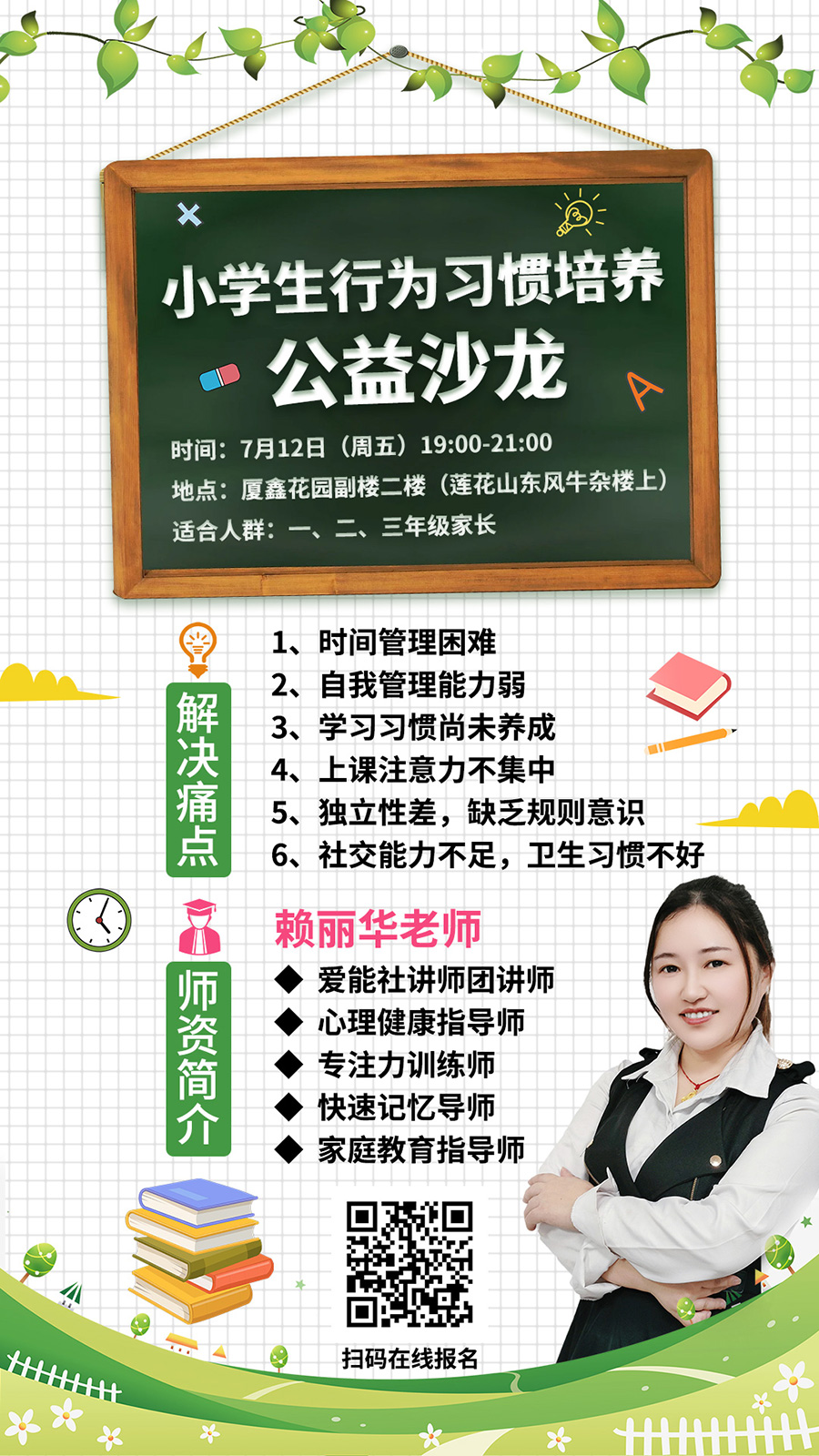• 【7月12日晚上】小學生行為習慣培養(yǎng)公益沙龍