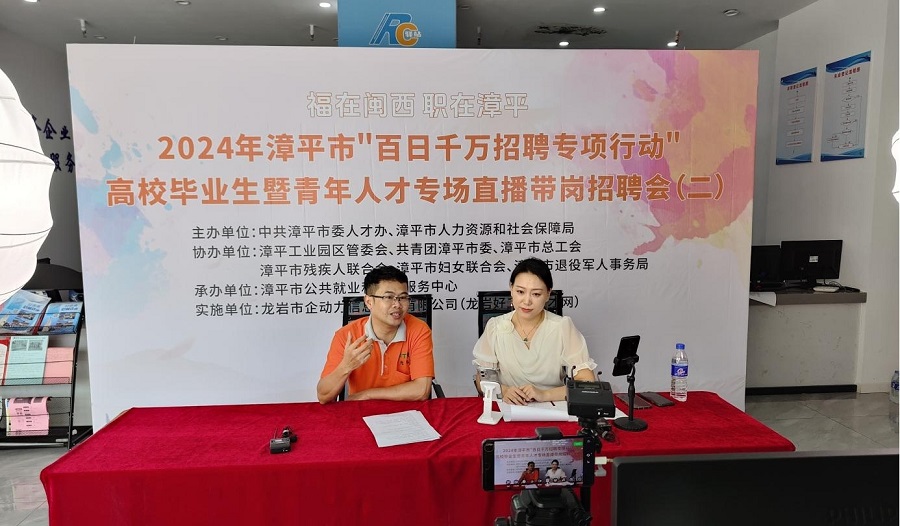 此次招聘會(huì)由中共漳平市委人才辦、漳平市人力資源和社會(huì)保障局主辦;漳平工業(yè)園區(qū)管委會(huì)、共青團(tuán)漳平市委、漳平市總工會(huì)、漳平市殘疾人聯(lián)合會(huì)、漳平市婦女聯(lián)合會(huì)、漳平市退役軍人事務(wù)局協(xié)辦;漳平市公共就業(yè)和人才服務(wù)中心承辦;龍巖市企動(dòng)力信息傳媒有限公司(龍巖好工作人才網(wǎng))實(shí)施,以“福在閩西 職在漳平”為主題,現(xiàn)場招聘會(huì)邀請了25家企業(yè),于2024年8月8日上午在漳平市櫸子洲公園成功舉辦了招聘會(huì),直播招聘會(huì)則于2024年8月8日下午邀請了10家企業(yè),通過“坐播”的形式在“龍巖人社”抖音直播間、龍巖好工作人才網(wǎng)微贊直播間開展直播帶崗活動(dòng)。
