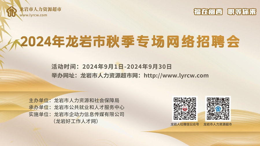 • “福在閩西 職等你來(lái)”2024年龍巖市秋季專場(chǎng)網(wǎng)絡(luò)招聘會(huì)