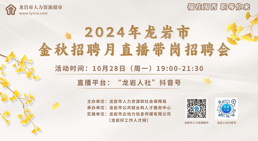 • 【10月28日直播】2024年龍巖市金秋招聘月直播帶崗招聘會(huì)