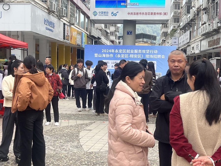 為深入貫徹落實黨中央、國務院關于做好就業(yè)工作的決策部署,推進高質量充分就業(yè),進一步促進勞動力市場繁榮和人力資源供需匹配對接,幫助各類企業(yè)招工穩(wěn)崗,支持各類勞動者求職就業(yè),由龍巖市永定區(qū)人力資源和社會保障局、廈門市翔安區(qū)人力資源和社會保障局主辦,龍巖市永定區(qū)勞動就業(yè)中心、廈門市翔安區(qū)就業(yè)中心承辦,龍巖市企動力信息傳媒有限公司(龍巖好工作人才網)實施的2024年永定區(qū)就業(yè)服務攻堅行動暨山海協(xié)作(永定區(qū)-翔安區(qū))現(xiàn)場招聘會于2024年12月10日上午在永定區(qū)鳳城街道南門街廣場舉辦。