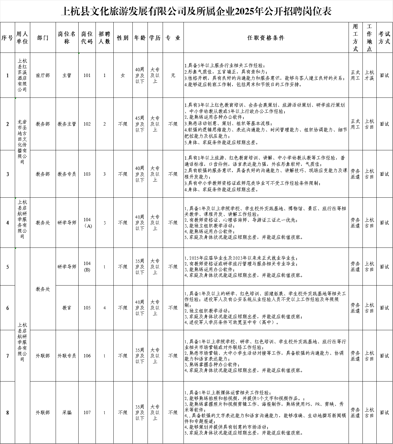 上杭縣文化旅游發(fā)展有限公司(上杭古田建設(shè)發(fā)展公司)系龍巖市杭川實業(yè)集團(tuán)有限公司下屬國有獨資企業(yè)。現(xiàn)因業(yè)務(wù)拓展需要,決定面向社會公開招聘所屬企業(yè)部分崗位工作人員,F(xiàn)將有關(guān)招聘事項公告如下: